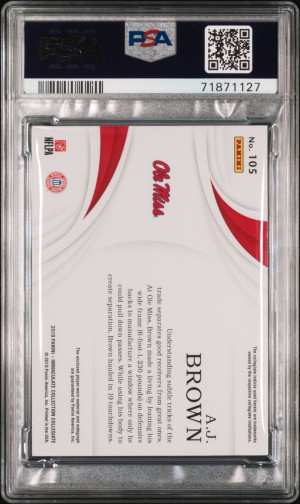 2019 Immaculate Collegiate Premium Gold /49 AJ Brown RPA Rookie Patch Auto RC PSA 9 POP 1