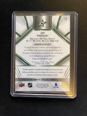 2021/22 UD ULTIMATE COLLECTION JOE PAVELSKI AUTO AUTOGRAPH #17 STARS