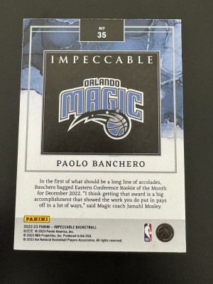 2022-23 Panini Impeccable Paolo Banchero 11/20 Silver Bar Draft Logo #35