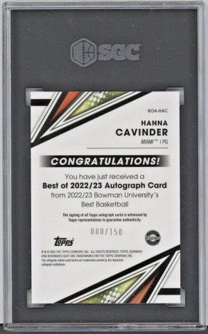 Hanna Cavinder BOA-HAC Auto /150 2022-23 Bowman's Best U Blue Refractor SGC 9.5