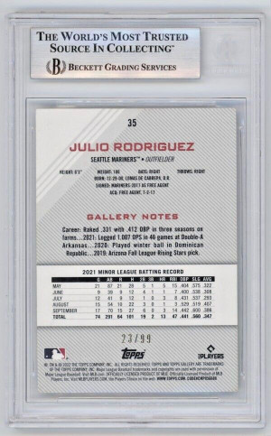 2022 Topps Gallery Green Pattern #35 Julio Rodriguez J-ROD /99 RC | BGS 8.5
