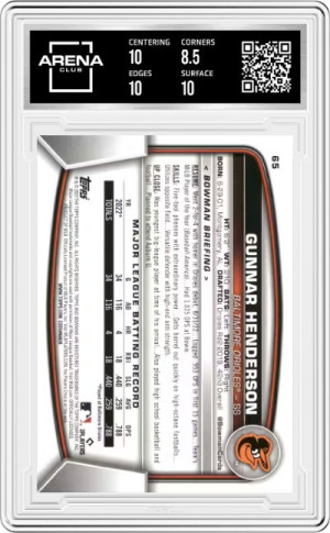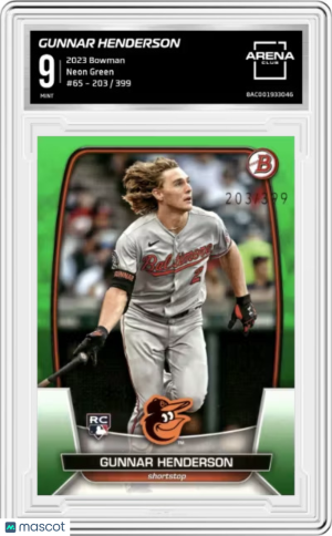 Gunnar Henderson #65 Neon Green /399 RC 2023 Bowman Graded Baseball Card | AC 9