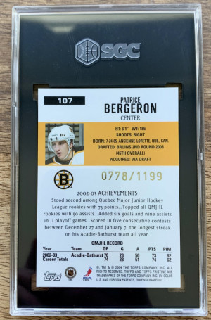 Patrice Bergeron 2003-04 Topps Pristine 778/1199 - SGC 10