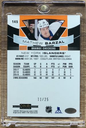 2019-20 OPC Platinum Matthew Barzal Orange Checkers 11/25