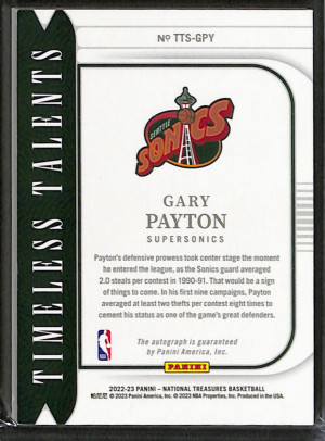 2022-23 National Treasures Gary Payton Timeless Talents /49 #TTS-GPY