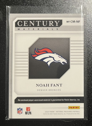 2020 Panini National Treasures Noah Fant Century Materials Player-Worn /49