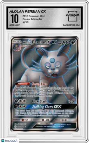 Alolan Persian GX 219/236 Graded Pokémon Card 2019 Cosmic Eclipse Full Art Holo