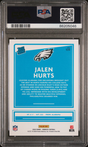 2020 Panini Donruss Jalen Hurts #314 Rookie PSA 10