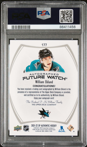 2021-22 Upper Deck SP Authentic WILLIAM EKLUND Future Watch Auto #177 PSA 10
