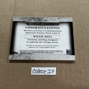 Willie Mays 2012 Topps Historical Stitches Card # HS-WM