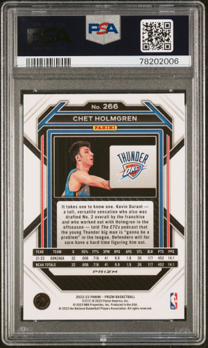 2022 Panini Prizm Chet Holmgren #266 Rookie PSA 9 Oklahoma City Thunder
