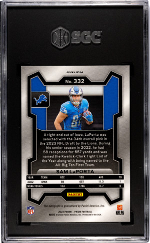 2023 Panini Prizm Sam Laporta #332 Rookie SGC 9.5 Detroit Lions