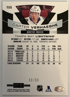 2019-20 Carter Verhaeghe OPC Platinum Arctic Freeze Marquee Rookies #/99