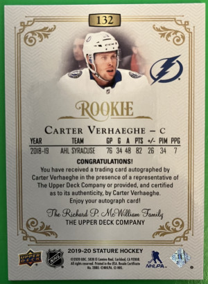 2019-20 Carter Verhaeghe Stature Rookie Auto