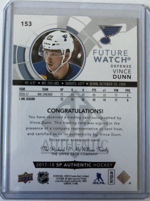 2017-18 Vince Dunn SP Authentic Future Watch Auto #/999