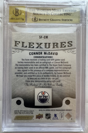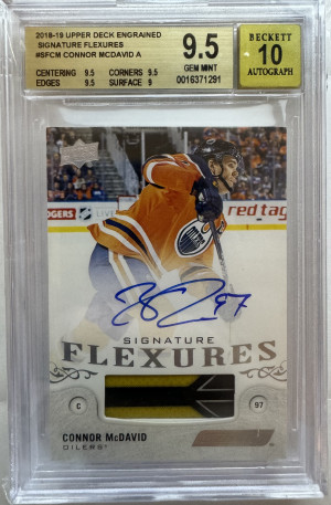 Connor Mcdavid Flexures 2018 Upper Deck BGS 9.5 HARD SIGNED ON CARD AUTO GAME USED STICK POP 1