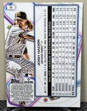 2023 Topps Cosmic Chrome Josh Hader Gold /50