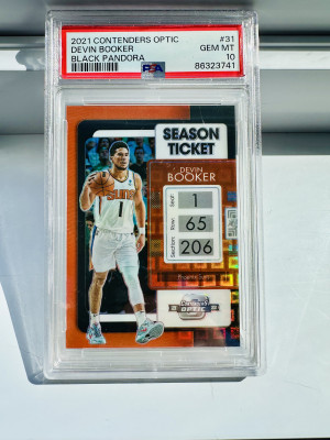 2021 Panini Contenders Optic Season Ticket SSP Black Pandora Prizm Devin Booker PSA 10 POP 1