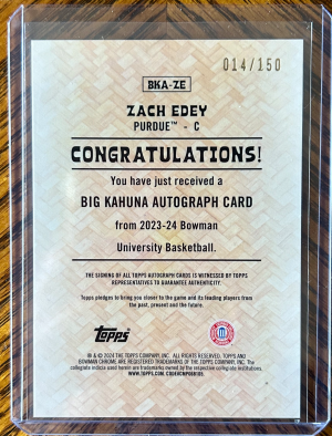 2023-24 Bowman University Chrome Edey Big Kahuna Auto /15
