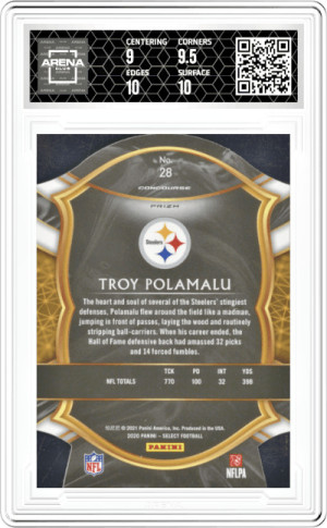 Troy Polamalu #28 2020 Panini Select Die-Cut Purple Prizm Steelers Graded AC 9.5