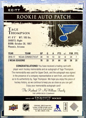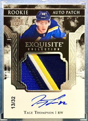 Tage Thompson 2017-18 Exquisite Collection Rookie Jumbo Patch Auto 13/32