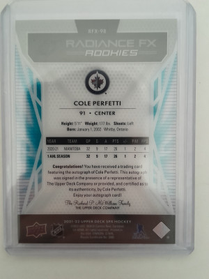 Cole Perfetti Radiance Rookie Auto /15