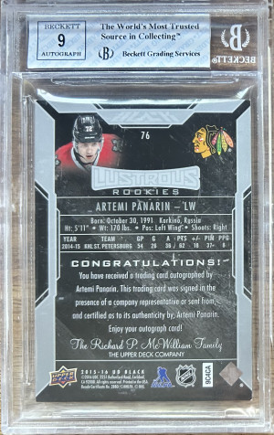 2015-16 Black Artemi Panarin Gold Ink Rookie Auto /25 BGS 8 Auto 9