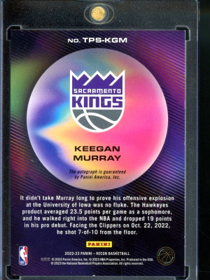 2022-23 Recon Keegan Murray RC /10 Rookie Gold True Potential Signatures Auto