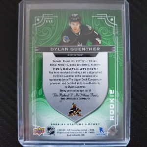 Dylan Guenther Green /65 Rookie Auto 2022-23 Stature 111 Arizona Coyotes