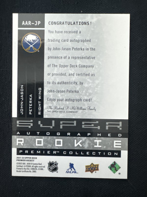 2021-22 UD Premier JJ Peterka Super Rookie Auto /99 Sabres