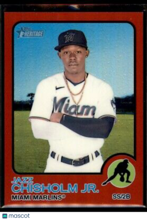 Jazz Chisholm Jr. 2022 Topps Heritage Chrome Red Refractor 087/573 #120 Miami