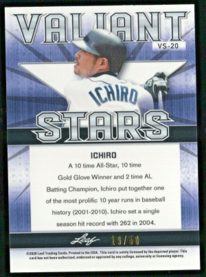 Ichiro Suzuki 2020 Leaf Best of Sports Valiant Stars Orange /50 Mariners