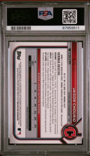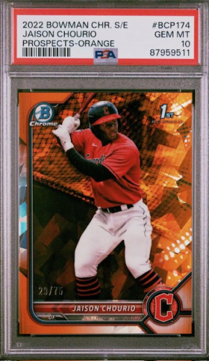 2022 BOWMAN CHROME SAPPHIRE JAISON CHOURIO ORANGE /75 PSA 10