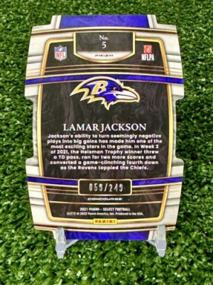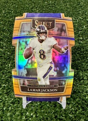 2021 Panini Select Concourse Orange Prizm Die-Cut 59/249 Lamar Jackson #5 Ravens