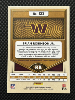 Brian Robinson Jr 2022 Gold Standard Platinum Rookie Auto RC #/25 Commanders NFL