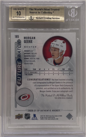 2020-21 SP Authentic Morgan Geekie 185 Future Watch Auto Inscribed FWA BGS 9.5