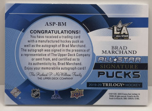 2019-20 Upper Deck Trilogy Brad Marchand #ASP-BM All-Star Signature Pucks /8