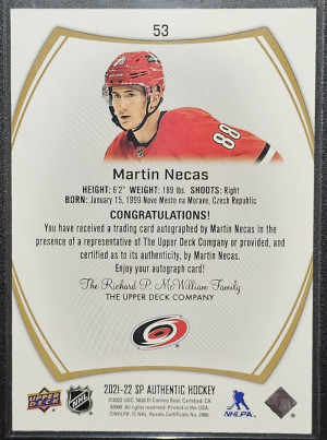 2021-22 SP Authentic Martin Necas Limited Autograph Auto #53