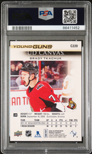 2018-19 Upper Deck Series 2 BRADY TKACHUK UD Canvas Young Guns #C220 PSA 10