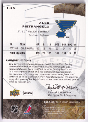 2008-09 The Cup Alex Pietrangelo RC Rookie Auto Patch RPA #135 081 /249