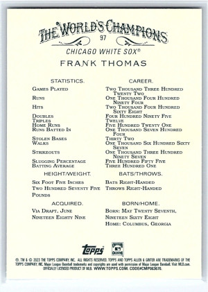 2023 Topps Allen & Ginter 97 Frank Thomas Chicago White Sox