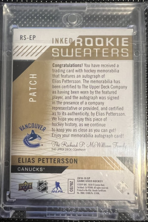 Elias Pettersson Inked Rookie Sweaters RPA /49