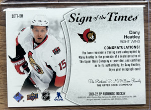 2021-22 SP Authentic Sign of the Times Dany Heatley #SOTT-DH Auto