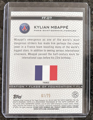 2021-22 Kylian Mbappe Topps UEFA Champions League Flags of Foundafion SP 61/75