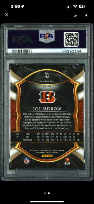 2020 Joe Burrow Select Silver Prizm