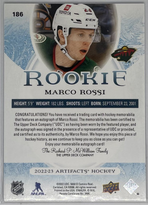 Marco Rossi 2022-23 Artifacts dual jersey auto rookie /49