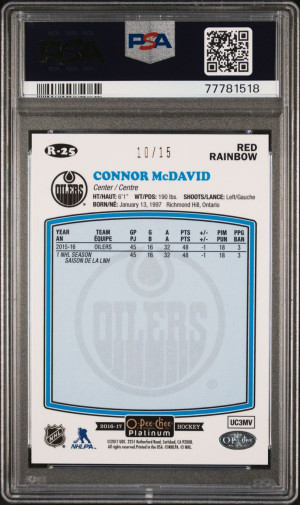 2016 OPC Platinum Connor McDavid Red Retro Rainbow /15 PSA 9 POP 2