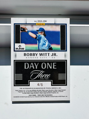 2022 Panini Three and Two Bobby Witt Jr. Day One Auto RC /5