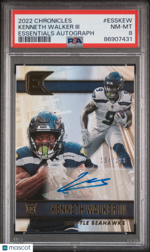 2022 Panini Chronicles Essentials Autographs Kenneth Walker III #ESSKEW Rookie PSA 8