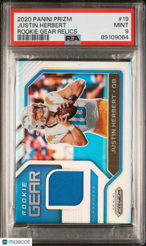 2020 Panini Prizm Rookie Gear Relics Justin Herbert #19 Insert PSA 9